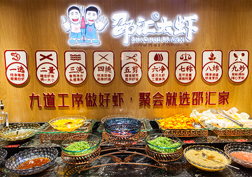 邵汇大虾拥有强大的后勤保障部门,核心底料由公司中央工厂集中配送,食材精选进口大虾,搭配秘制底料制作而成,研发出一锅两吃的饮食模式(先吃虾后涮菜,荤素搭配随心?。?,打造出绿色健康的饮食新文化。