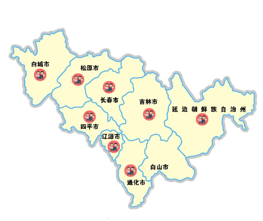 长春市、吉林市、通化市、辽源市、白城市、延边朝鲜自治州、松原市、四平市